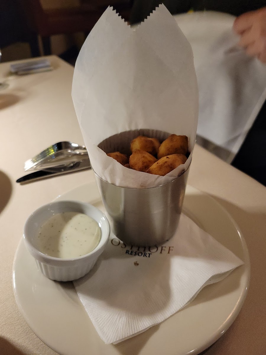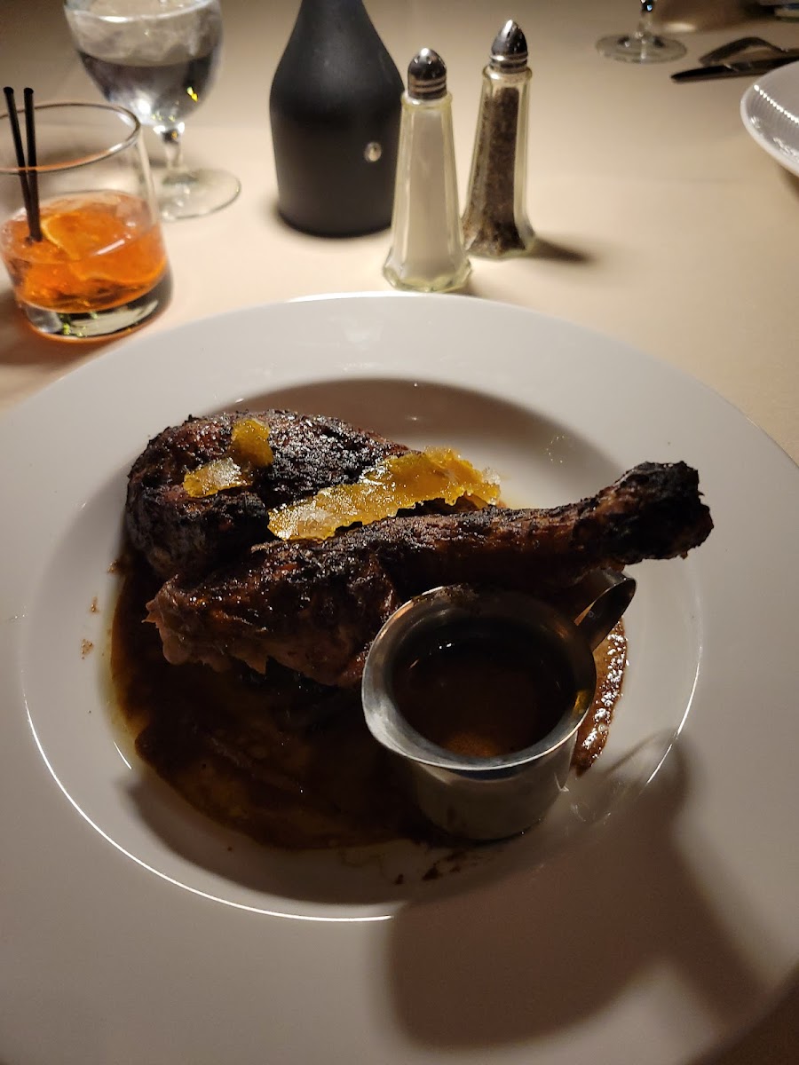 We had an excellent (chopped) Caesar salad with grilled shrimp (one of the best salads we’ve had in a while), a delicious filet and perfectly cooked (med rare for me) ribeye with side of mushrooms and (again) perfectly cooked baked potatoes. Leah our server was great. You can usually get a table without a reservation on a Friday or Saturday after 7-7:30 pm (like we did).